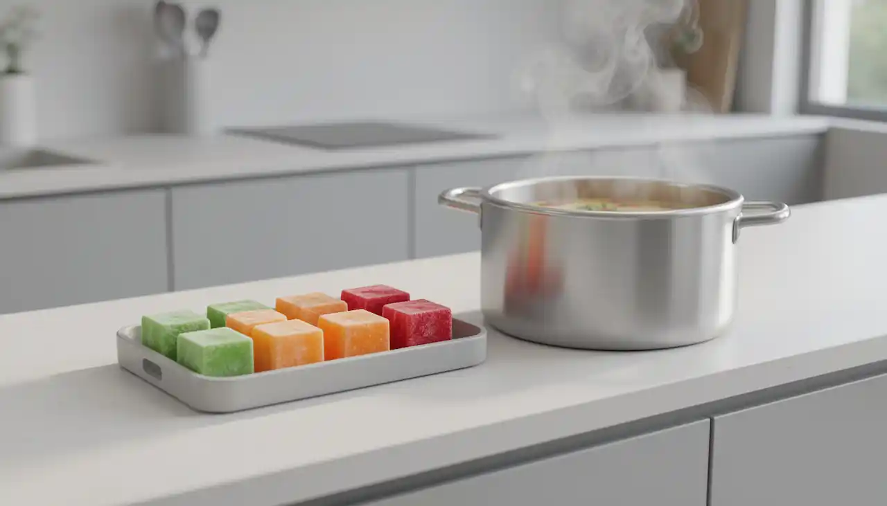 La forma más eficaz de preparar sopas rápidas es disponer de ingredientes 'base' ya listos. Congelar caldos de huesos, carne picada de cordero (en porciones individuales) y purés de verduras en pequeños moldes de silicona reduce el tiempo de preparación de 30 a 5 minutos. Por ejemplo, sacar del congelador cubitos de calabaza previamente cocida al vapor y mezclarlos con un caldo de huesos caliente significa tener una comida lista al instante. Los datos académicos confirman que el método de congelación rápida minimiza la pérdida de vitaminas en las verduras. El congelador es el mayor aliado de una cocina saludable.